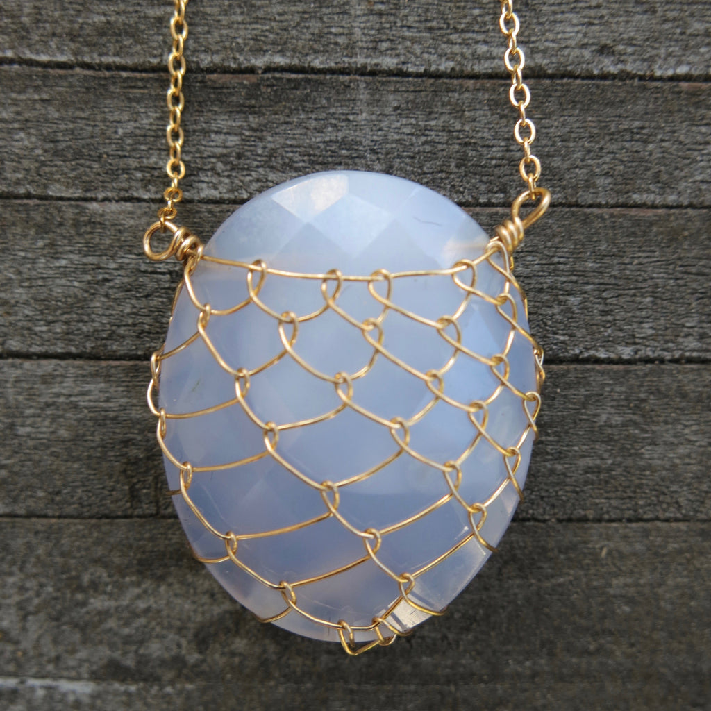 Blue Chalcedony/Gold-Fill Fishnet Gemstone Necklace