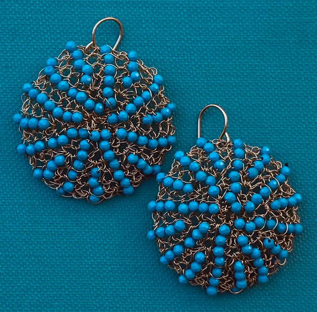 Hand-crocheted, yellow-gold fill wire & turquoise rounds.